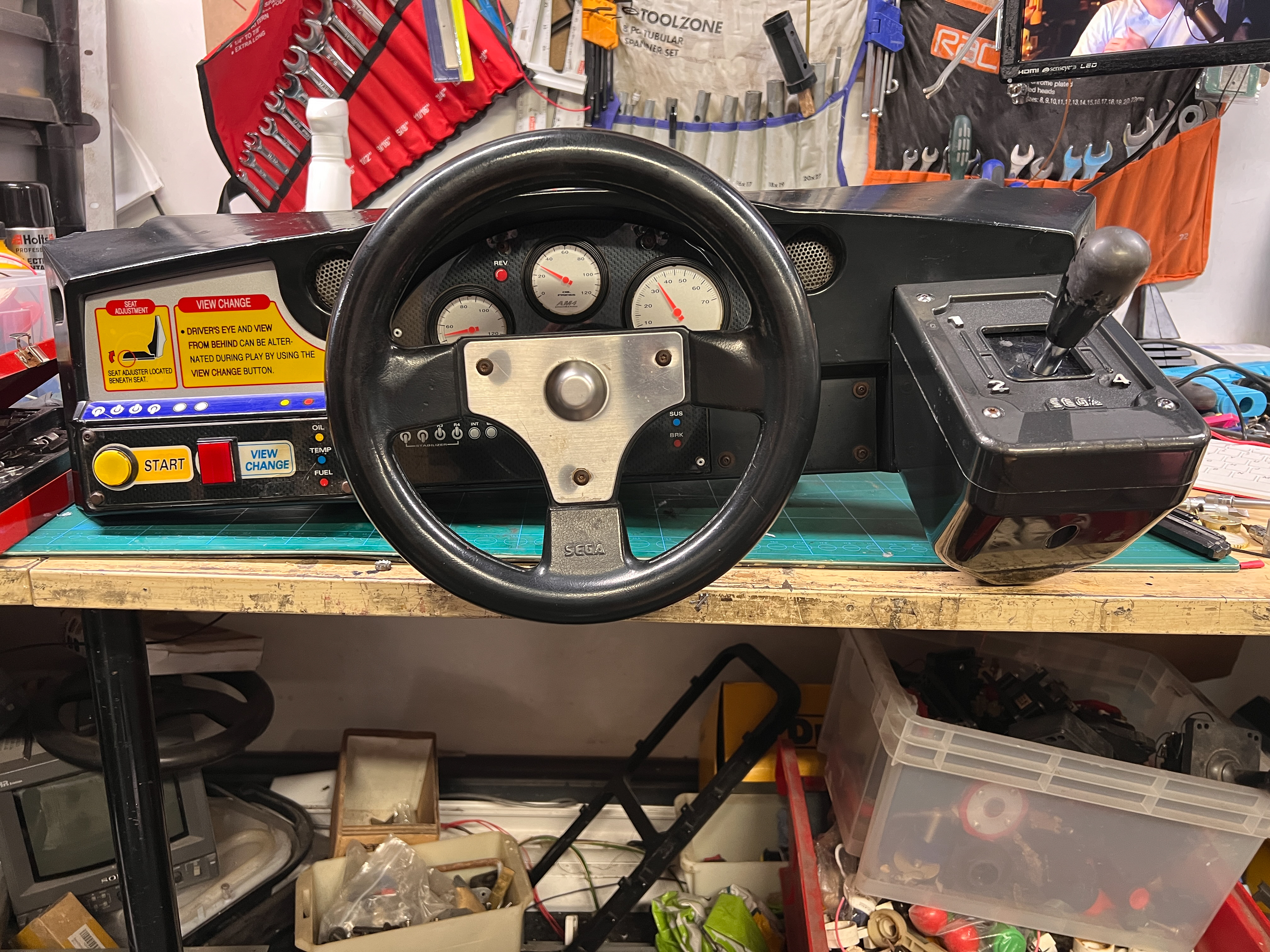 So, an over-excited driver managed to rip the steering wheel clean off this classic Sega Rally cabinet. Easily done. Apparently....If you ignore the small matter of snapping solid metal.